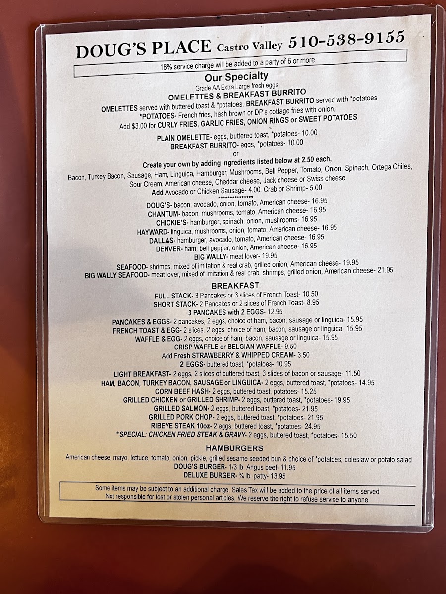 When you step into Doug's Place, you're in for a delightful treat that feels like home. Whether you're craving hearty comfort food or something a bit more adventurous, the Doug's Place Menu offers a wide array of choices to satisfy any appetite. From freshly made sandwiches to savory main dishes, everything is crafted with care using the best ingredients. The casual vibe makes it the perfect spot for a relaxed meal with friends or family. You'll find the perfect combination of flavors that make every visit something to look forward to. Their menu offers a variety of options that are sure to hit the spot, whether you're in the mood for something filling or light. Enjoy a delicious meal that’s as comforting as it is satisfying, all at Doug's Place.